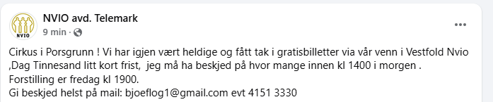 NVIO har lagt ut denne meldingen